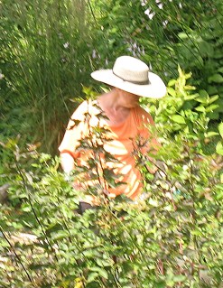 I used to wear formal suits and heels but now my work dress is “garden casual”. I wear a pair of old hiking boots with white sports socks, worn out shirts, baggy pants covered with paint stains. To top it off, I wear a big hat the covers my face and protects me from the hot mid-day sun.