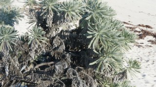 Martin, The confusion about sea grapes stems from the fact that we speak of two different kinds over here. There is a very well liked native sea grape (Coccoloba uvifera) and then there is the species that is invasive in The Bahamas, the Hawaiian Seagrape (Scaevala taccada, formerly Scaevola frutescens). The Hawaiian Seagrape is not recommended for propagation or sale in The Bahamas.