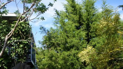 My neighbor invited me to see how big a Red Cedar tree can get. She knew from my earlier blog that I planned to plant one in my yard. She had planted one a number of years ago in her own backyard and wanted me to see the size of it today. She said that if she had known how big it was going to get, she would have planted it farther away from the house. This is what she showed me:
