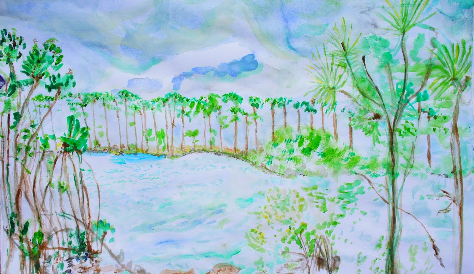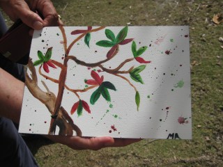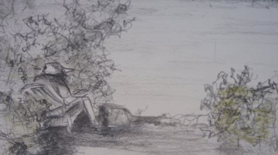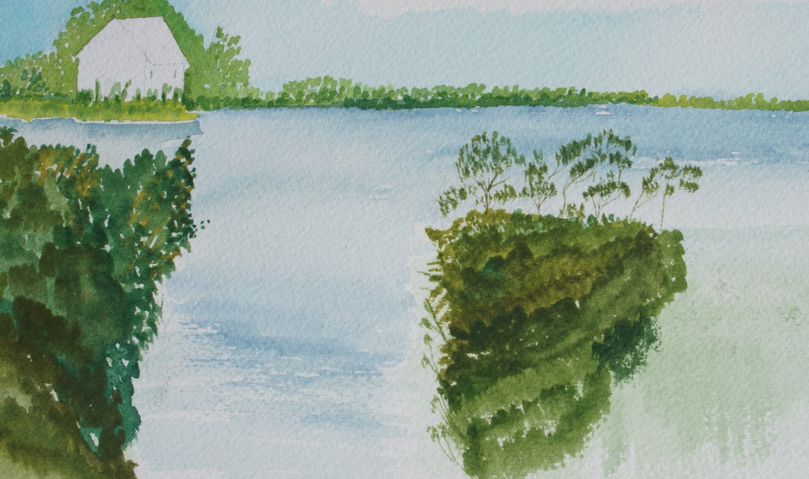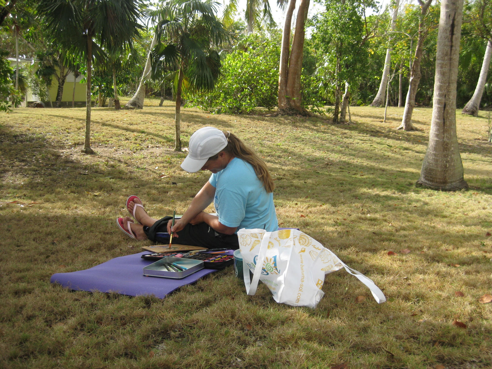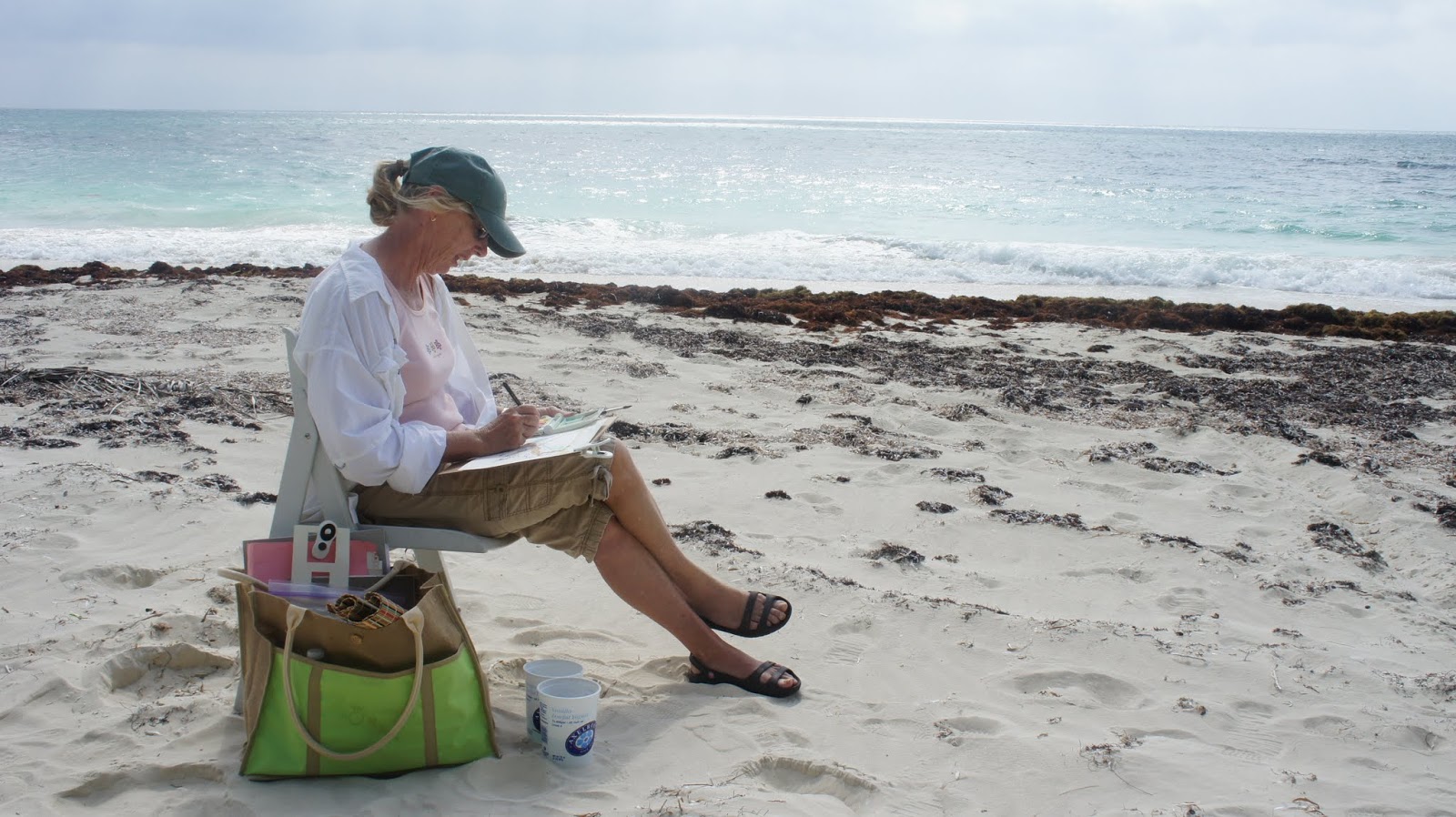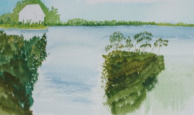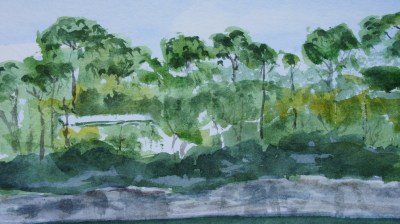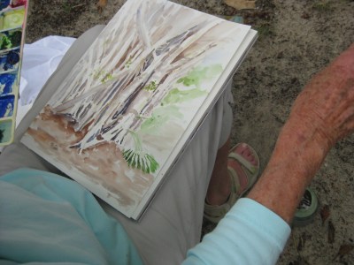 We meet outdoors on Wednesday morning at a certain site, bring our own chairs, paper, art supplies, bug spray, sunscreen, and choose a quiet place to paint.