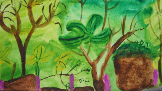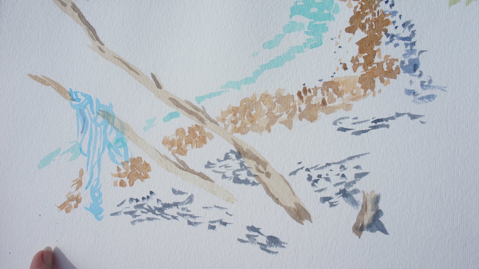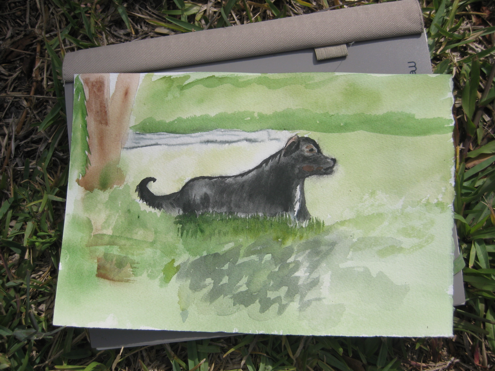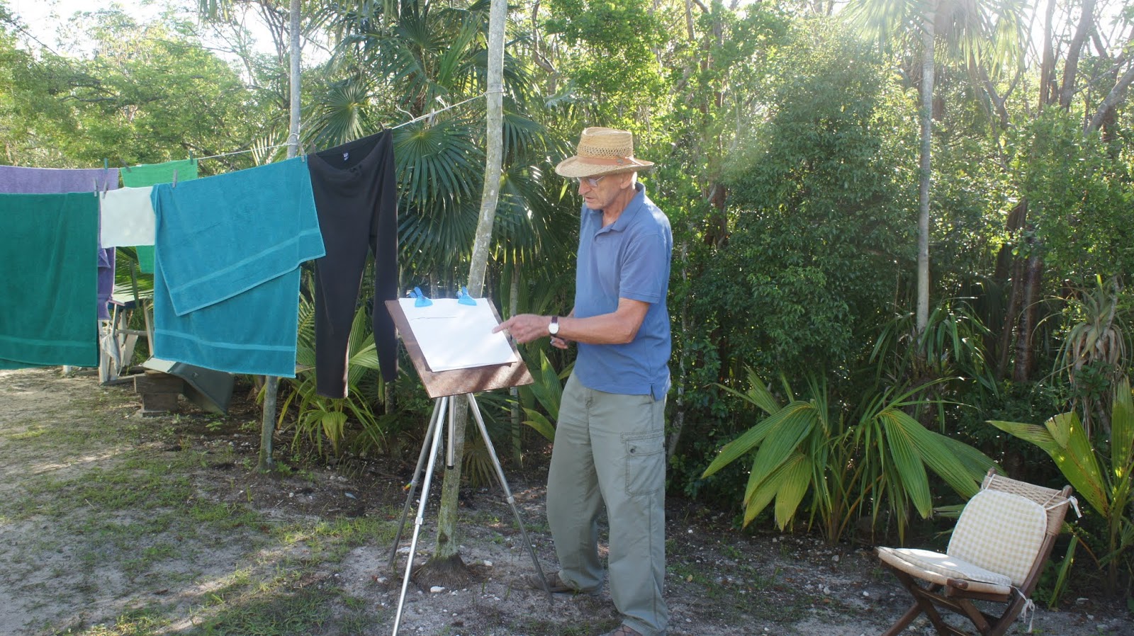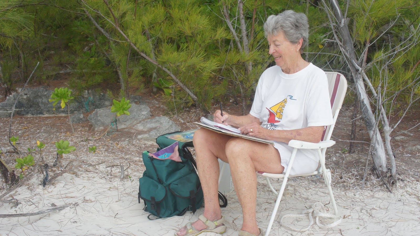 We meet outdoors on Wednesday morning at a certain site, bring our own chairs, paper, art supplies, bug spray, sunscreen, and choose a quiet place to paint.
