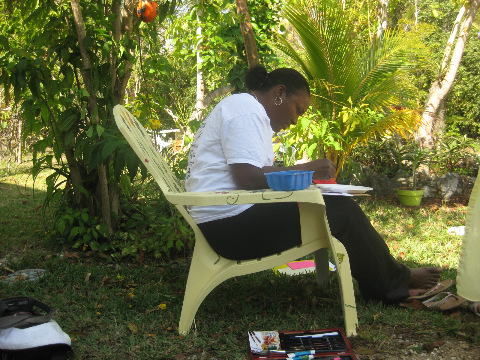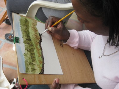 If there is a newcomer to the group, we offer them paper, paint, pencils, a chair, or whatever they need to get started. If someone just wants to sit and watch, they too, are welcome.