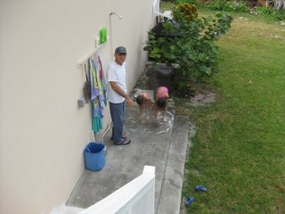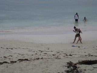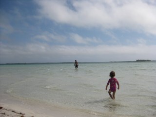 Even though there has been limited time to play on the beach, those few moments that we had are so memorable. The water is crystal clear. We saw dolphins, Bally hoo, baby baracudas and jacks. Joe almost bumped into some angel fish with his head when he was snorkeling out front. They were so close that he couldn’t see them.