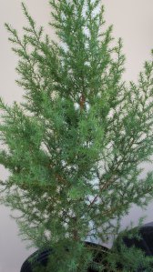 My neighbor invited me to see how big a Red Cedar tree can get. She knew from my earlier blog that I planned to plant one in my yard. She had planted one a number of years ago in her own backyard and wanted me to see the size of it today. She said that if she had known how big it was going to get, she would have planted it farther away from the house. This is what she showed me: