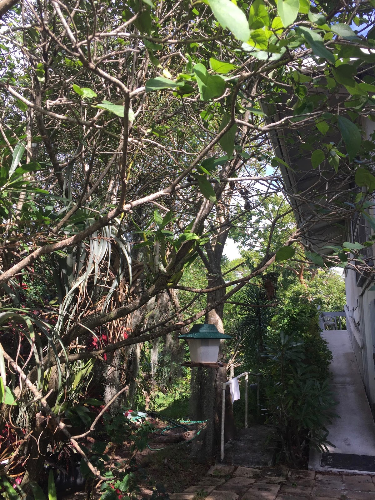 Photographed from top to bottom, one sees that we can still look out and see the neighbors’ beautiful trees and bushes, with less emphasis on the road between us.