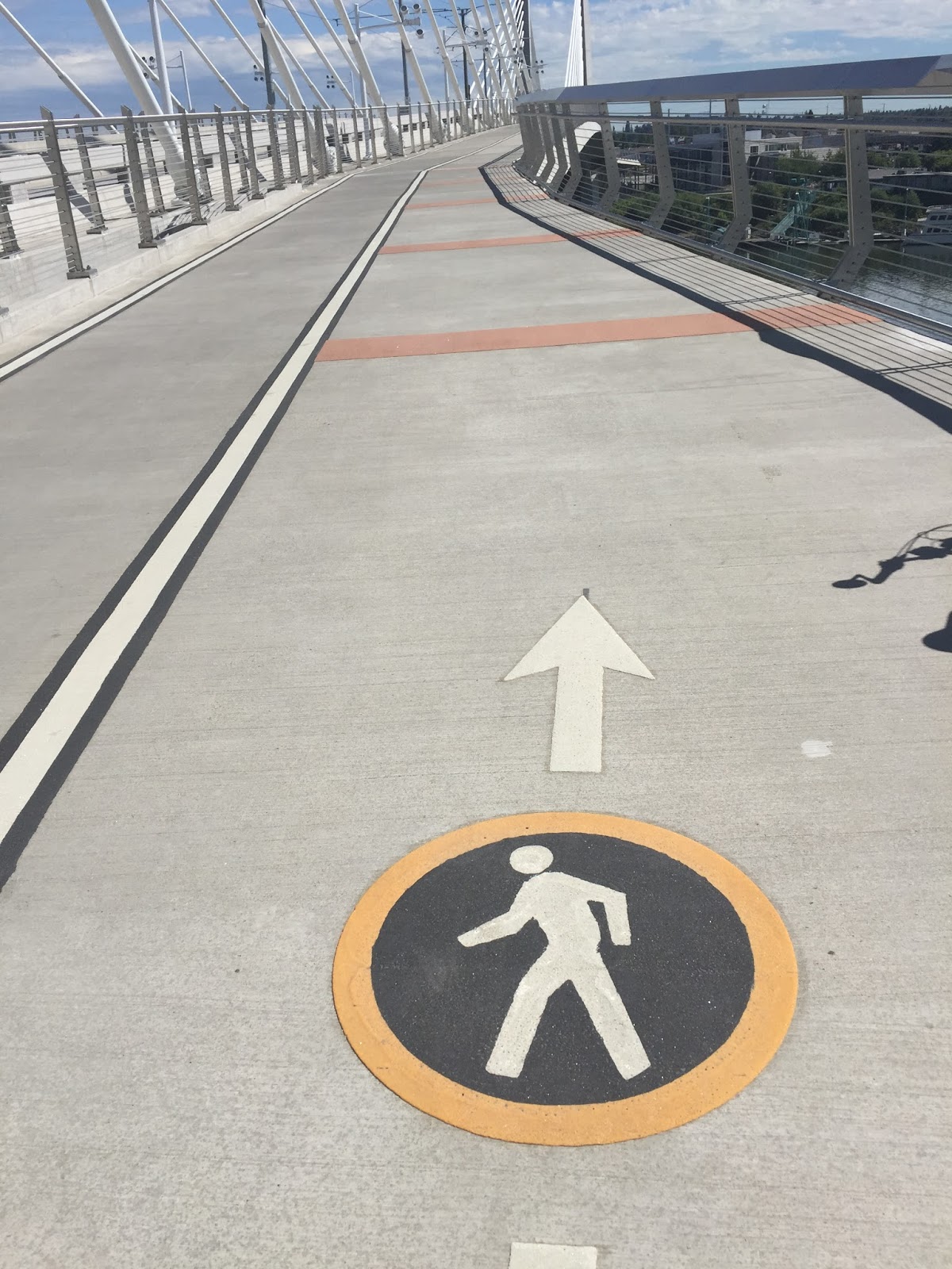 Portland has entire bridges dedicated to pedestrians, bikers and rails. Here is one we take almost every day, the Tililikum Bridge. Walking, or riding the bike across this bridge is such a thrill and a bit of a challenge on the way up to the top.