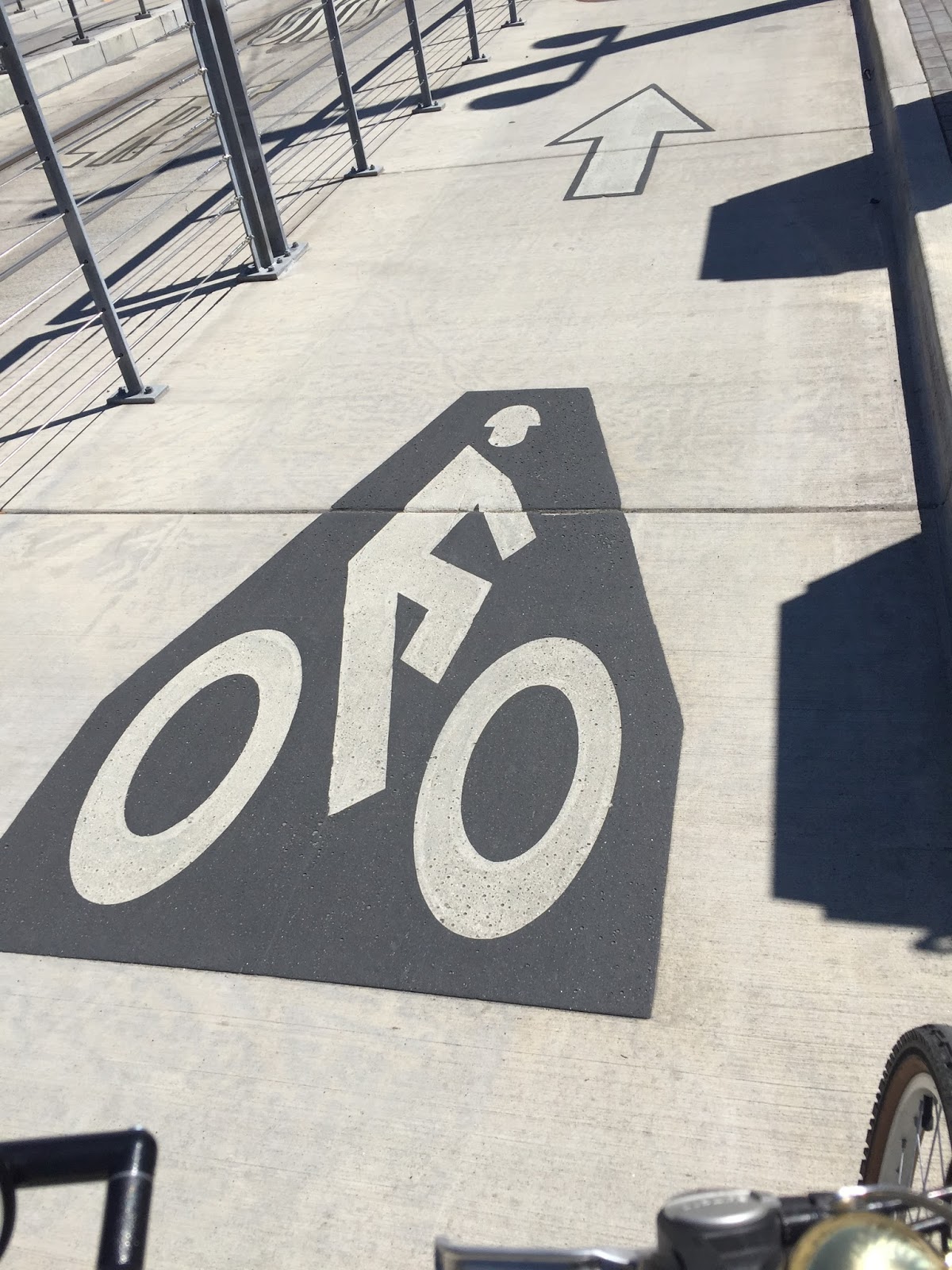 Lines and signs clearly lay out where pedestrians and bikers are supposed to be, reducing the usual dance between them.