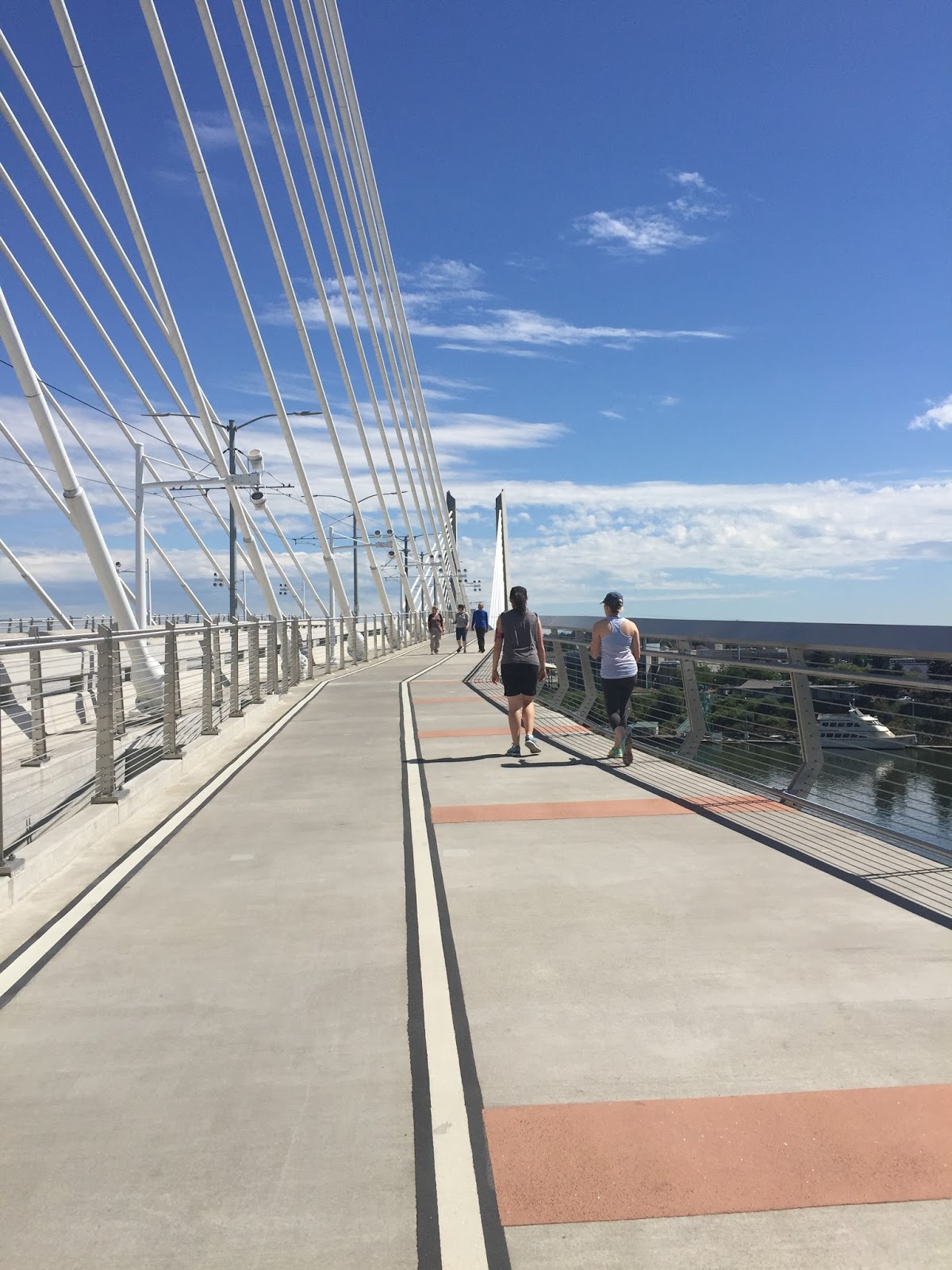 The views from the top of the bridge are spectacular as well and reward us for our work. We often stop to admire the view and take a breather from the upward part of the bridge. Although, going down on the other side gives us plenty of respite, as well.