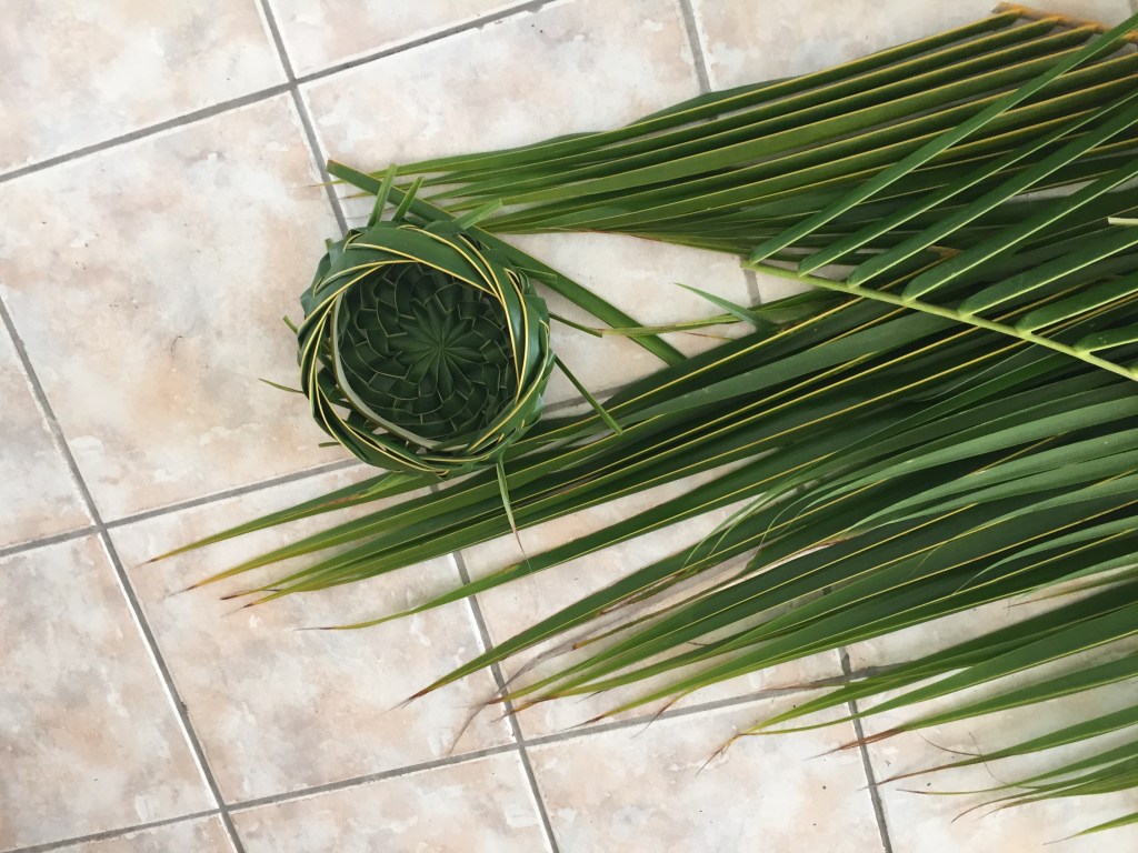 Nearby Coconut Palms Basket hand woven from part of a coconut frond