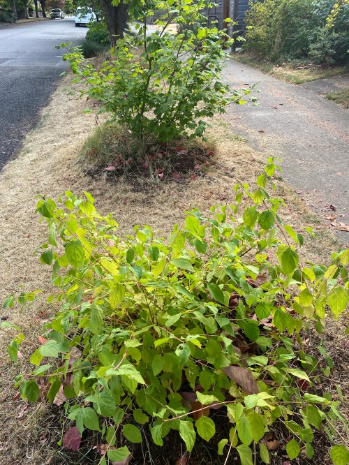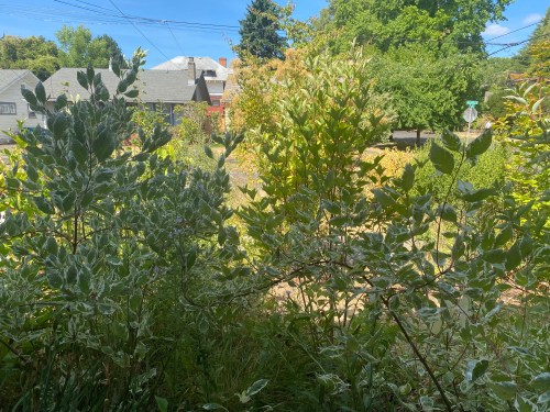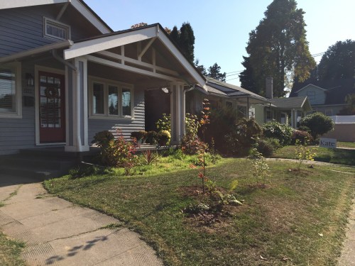 We started landscaping our Portland bungalow with native plants about five years ago. When we moved in, the small yard was almost 100% green grass. We began by planting a small area in front of our porch with low to the ground natives.