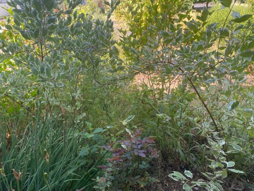 in our side yard, we planted small groups of native bushes and grasses that we called “islands”. We mow the lawn between the islands to give the native areas the semblance of a landscape shape. Without these native plant islands, we would have nothing between our house and the street, but mowed grass.