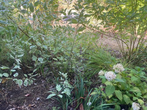 Fifth, not every plant in our yard is required to be native. While discouraging non-native invasive plants from growing in our yard, we have encouraged non-native roses and hydrangeas adding color and textures in places we desired.