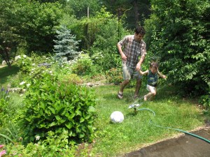As for grandchildren, I highly recommend the following incredibly expensive toys: water, a bucket for pouring, and a water hose. After cardboard boxes and a rubber ball, water is the best toy ever invented.
