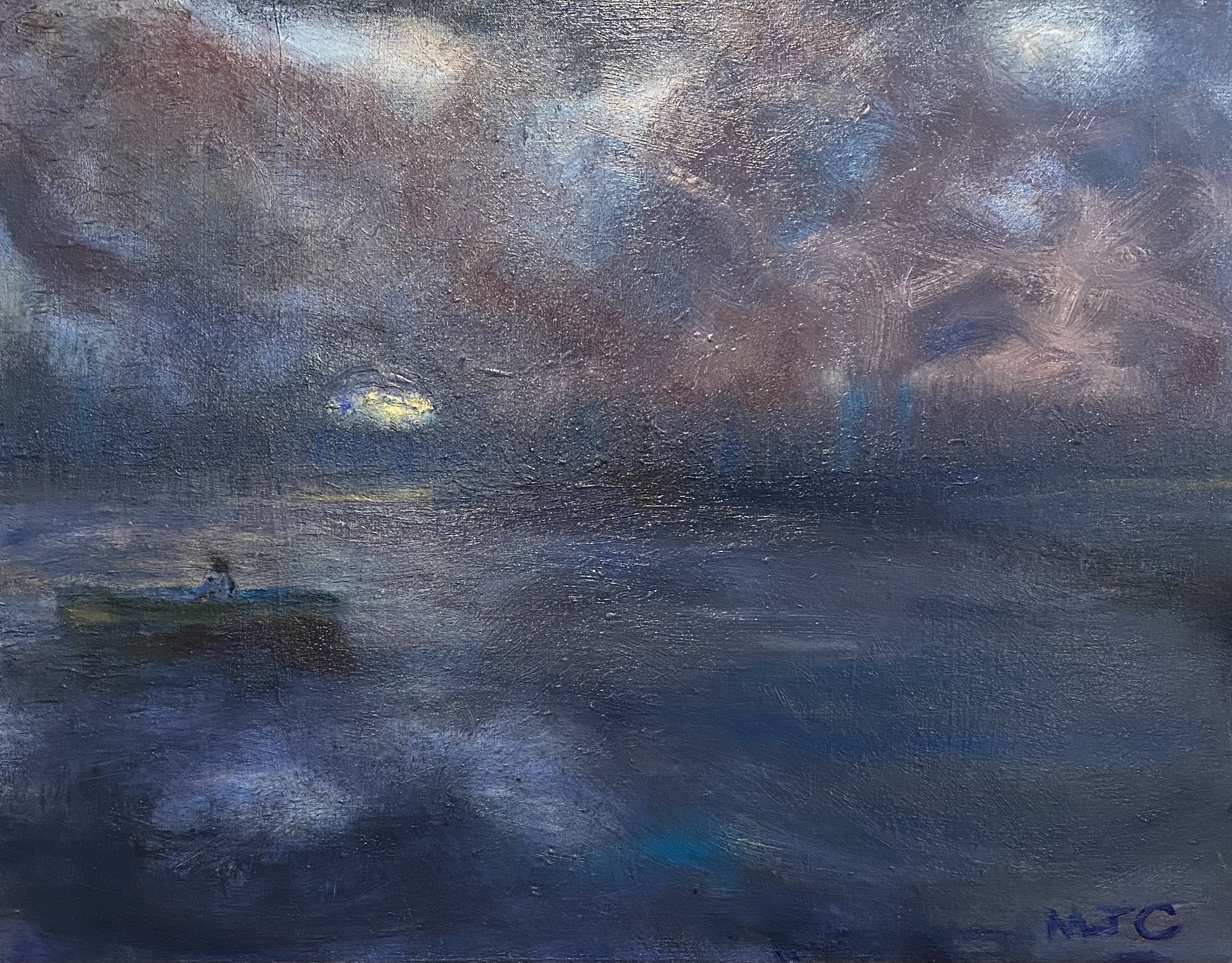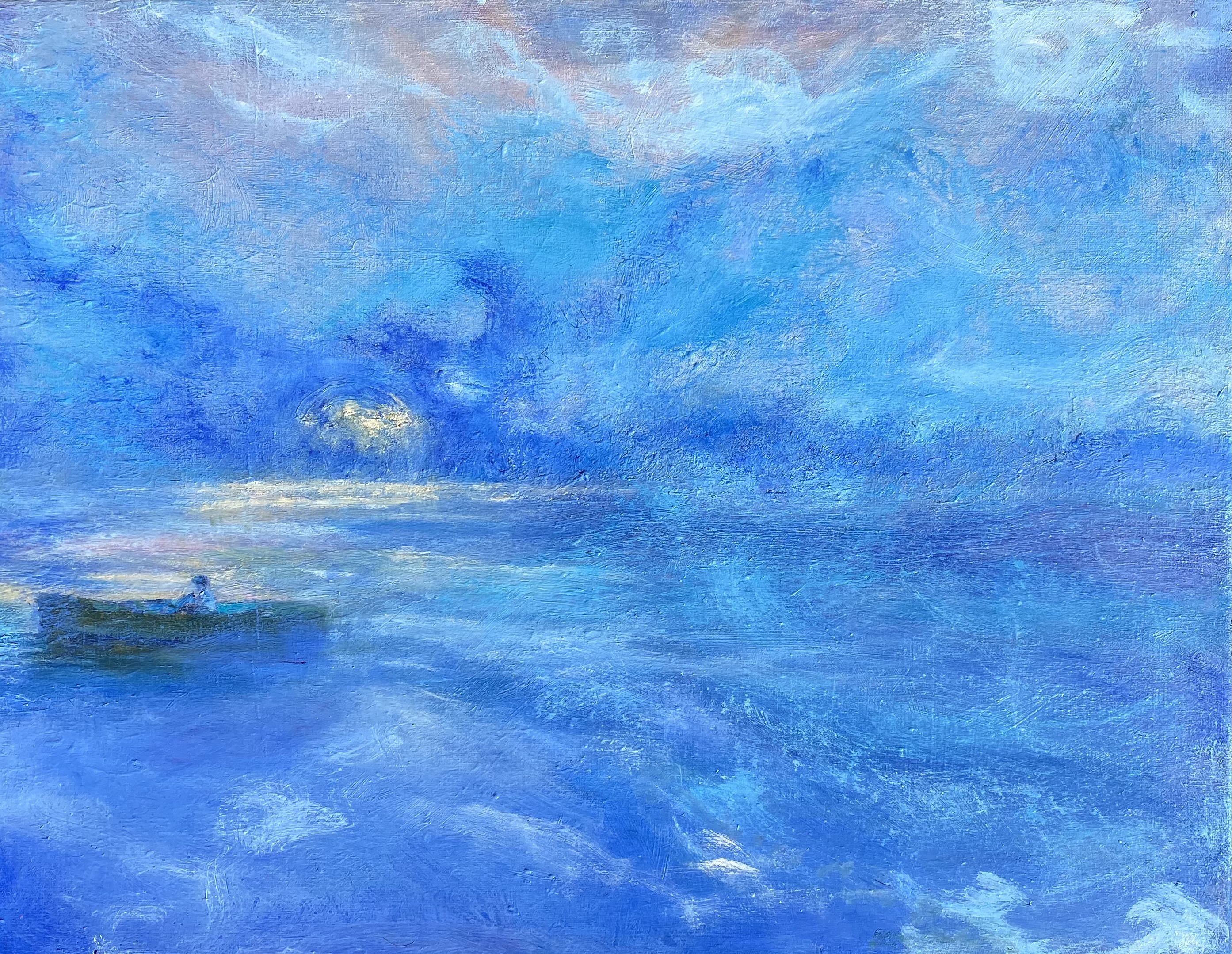 Gliding softly into sadness about what would happens next, darker blues, softer light, yet still appreciating the silence of ever shifting remoteness.
