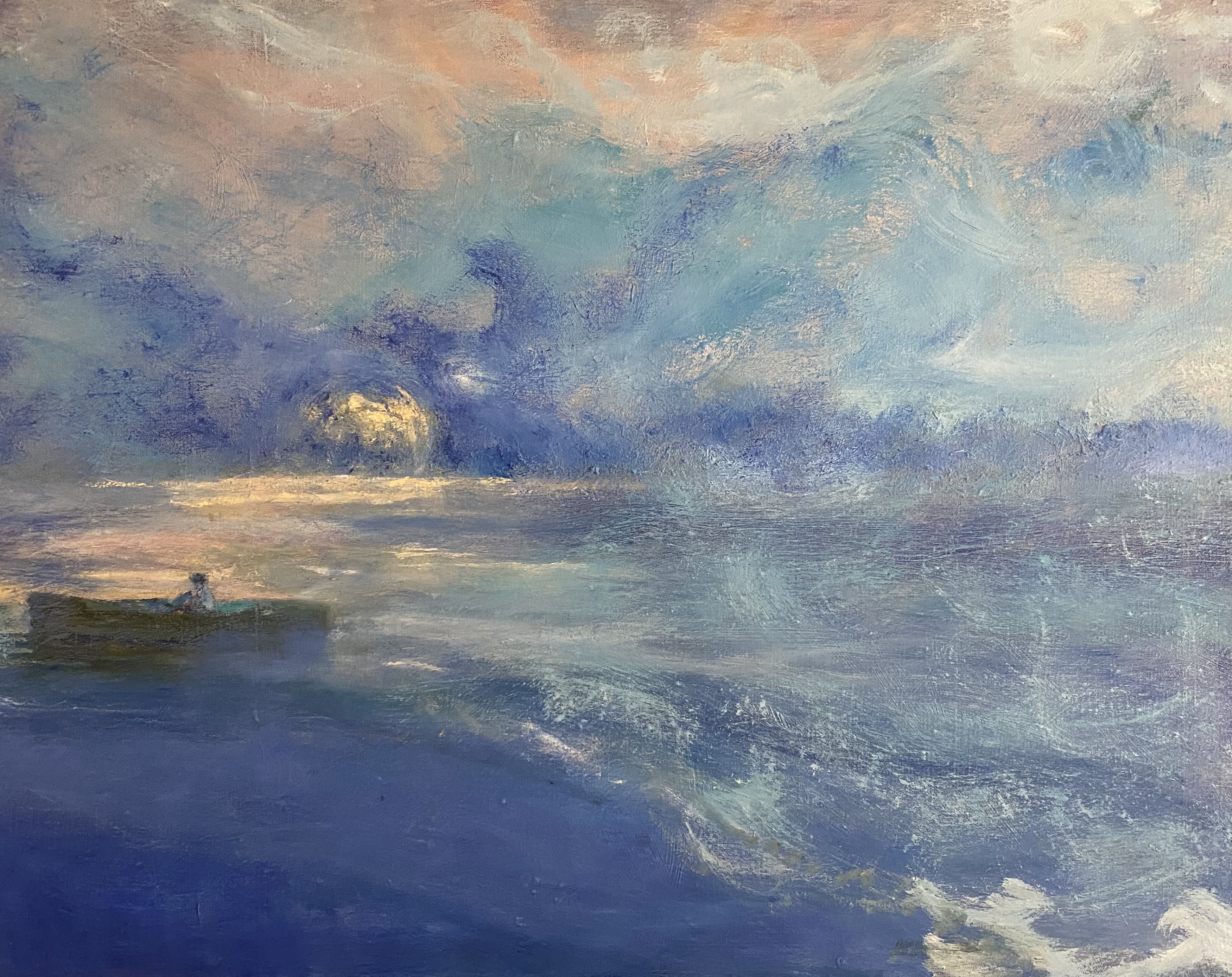 In the last six months, I have painted the same canvas numerous times, to reflect on my feelings during this Global Pandemic. It is an old, used canvas that I purchased at Goodwill for a couple of dollars. In the beginning, I painted the entire canvas white with Gesso and then began to use my oils to describe how I feel.
