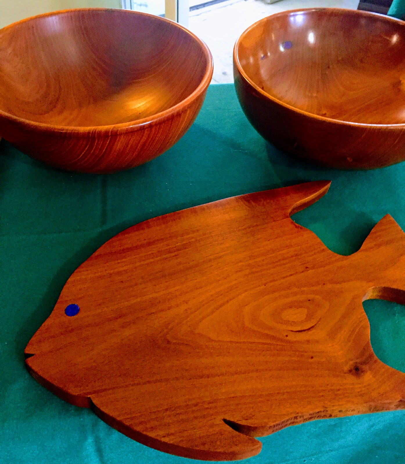 Our neighbor, Steve Knowles is a wood turner who makes beautiful wooden bowls and other wood products that are all hand crafted in his workshop at his home in the Abacos at Bahama Palm Shores. He has taken on woodturning as a hobby. Every year his work becomes more popular and he now shows his pieces at art fairs around the country.