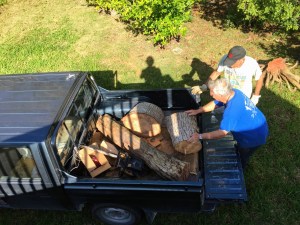 Steve stacks the wood that he has collected and prepares it for woodturning through a process of cutting and seasoning.