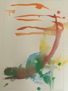 To do this, I started by preparing a background of wet-on-wet watercolors on paper. Once this dried, I then watercolored over it and also used ink to complete the painting. The resultant painting called Perspective 3 is below. It did have the desired feel of commotion while also adding new lines and shades of interpretation.