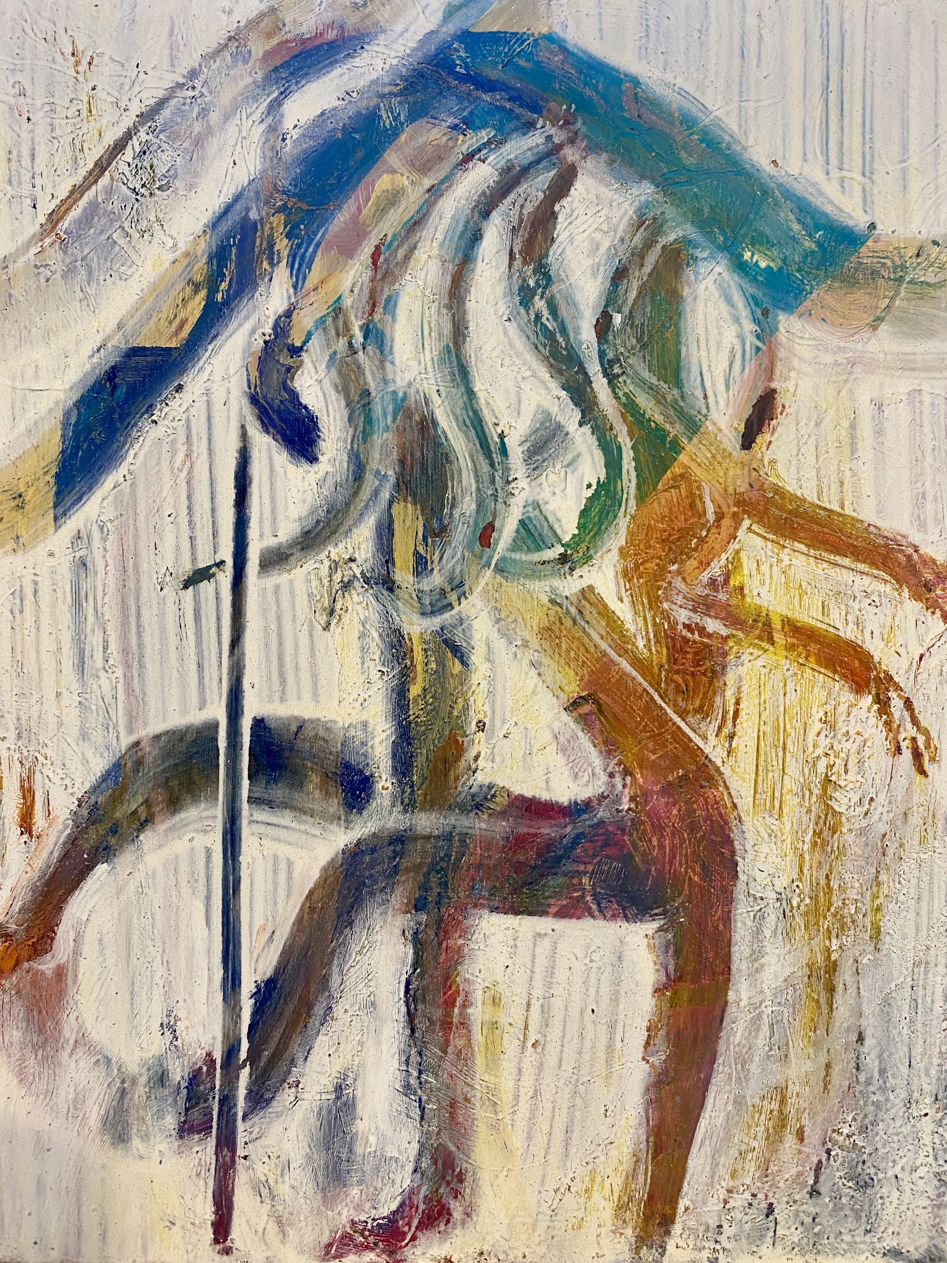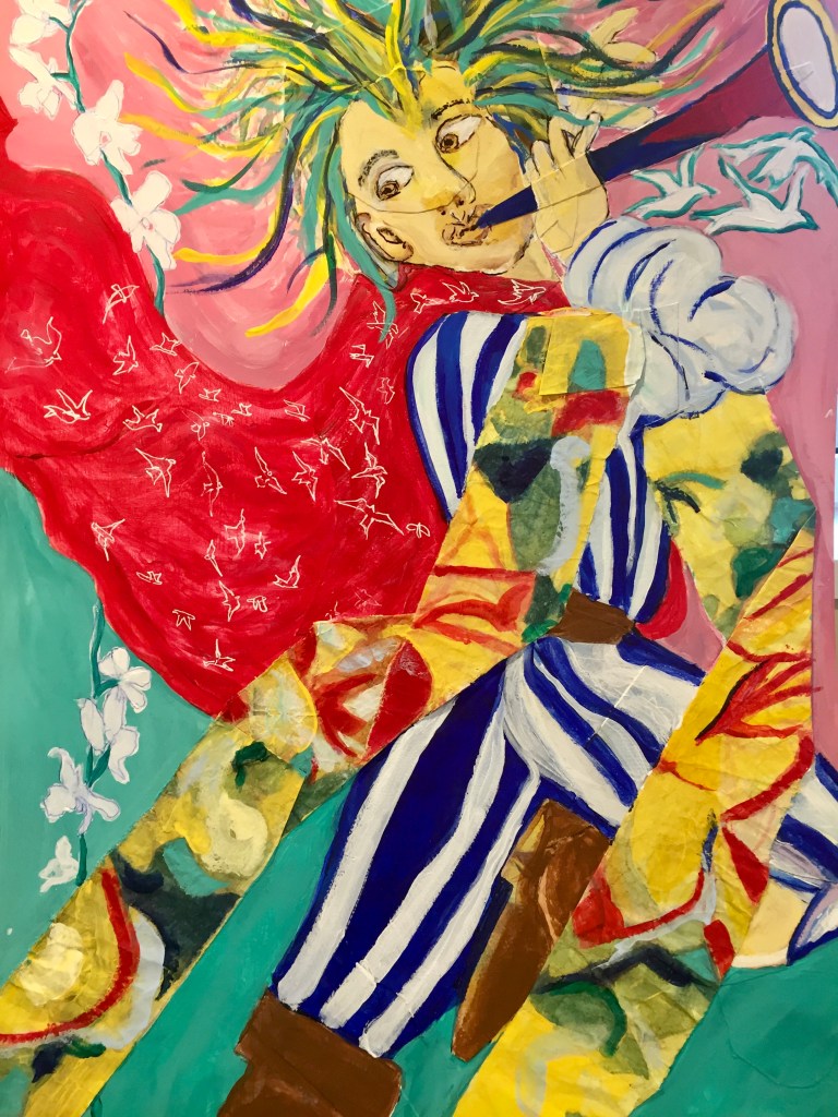 Looking at what happened during this class, I personally prefer the painting that I have called “Pandemic Home School Child” to the final painting that I did for the course called “Pied Piper Child.” I prefer the roughness and chaos of the “Home School” painting which is more in line with the chaos and playfulness of kids. This does not mean that I needed to stop at one point in this class project rather than going to the next. Each stopping point is providing a kind of wonder of its own. Classes are supposed to make us think, and consider new options to our art goals.