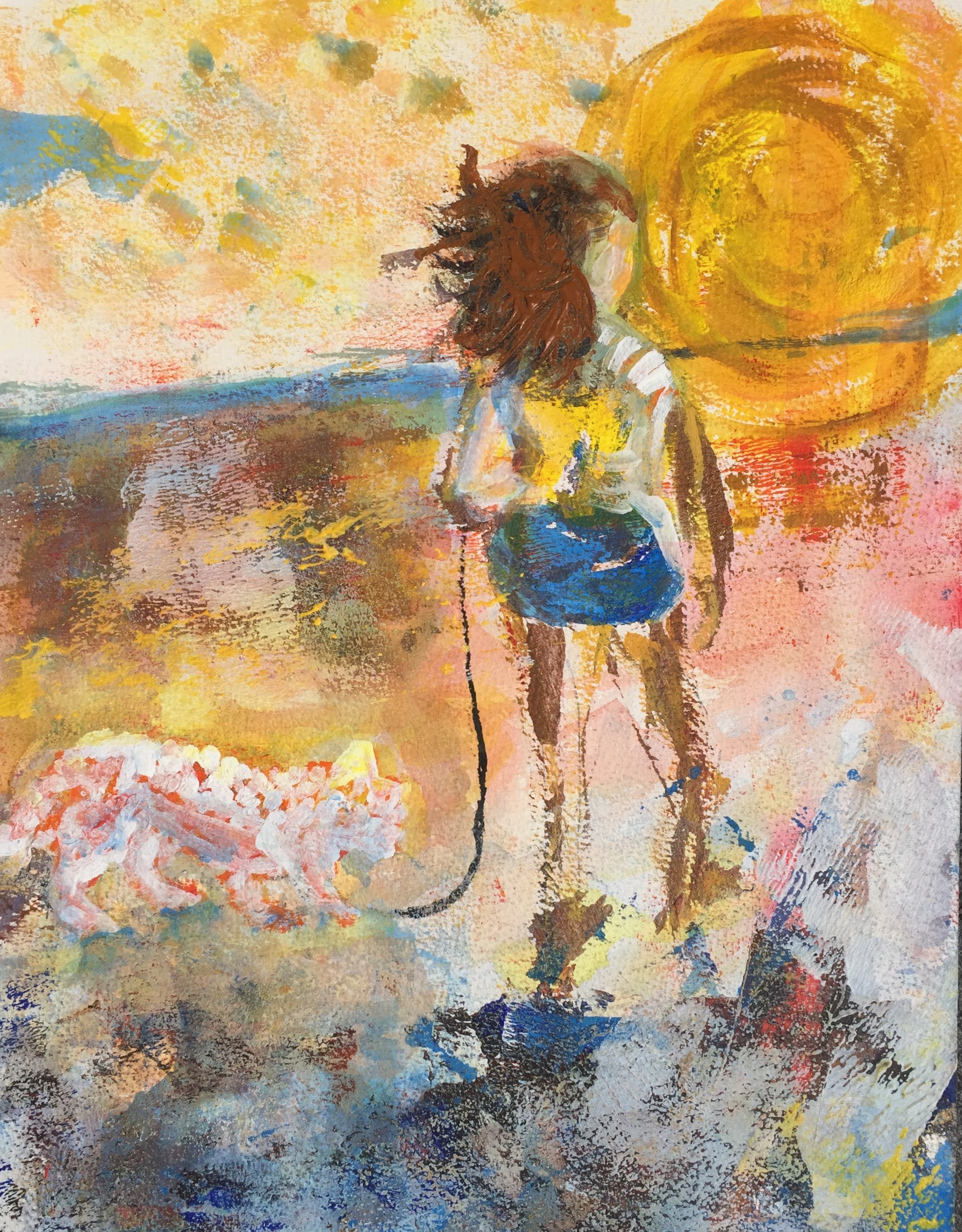 With time, I worked it over again, painting it so that the girl blends in with the background, almost becoming one with the big river and beach.