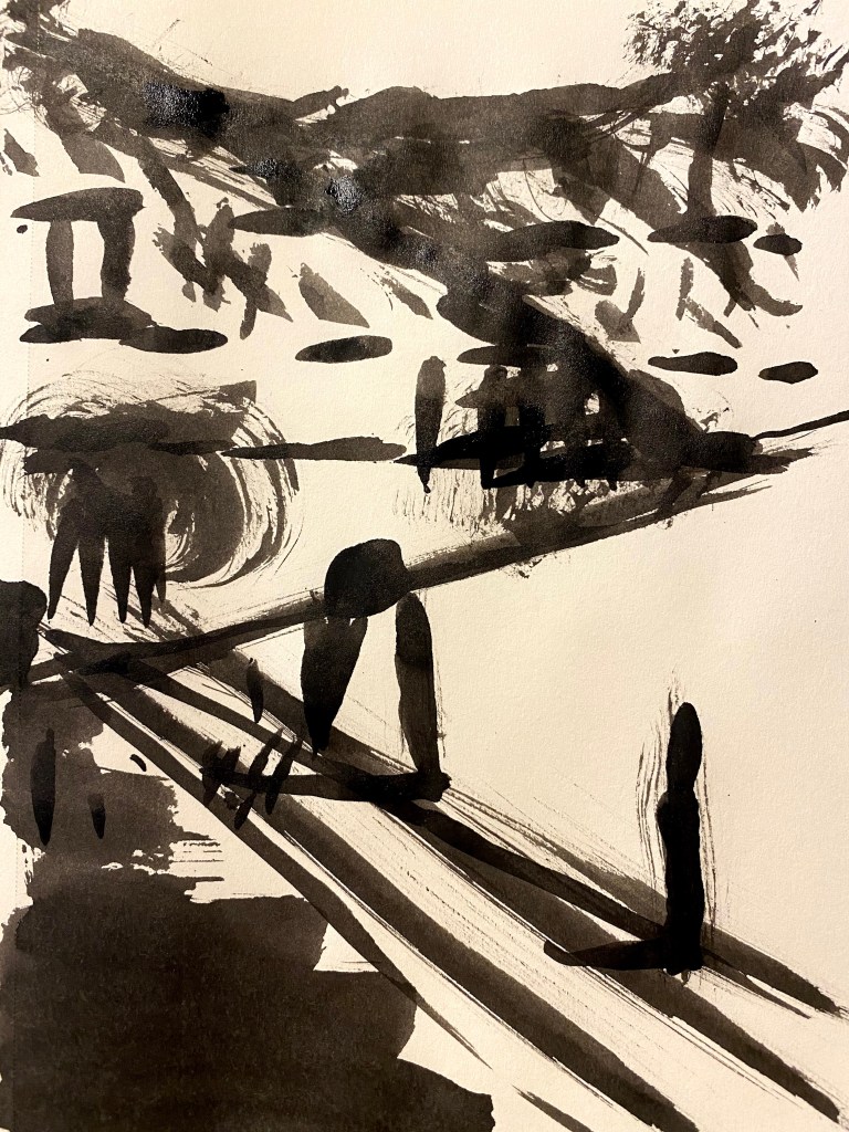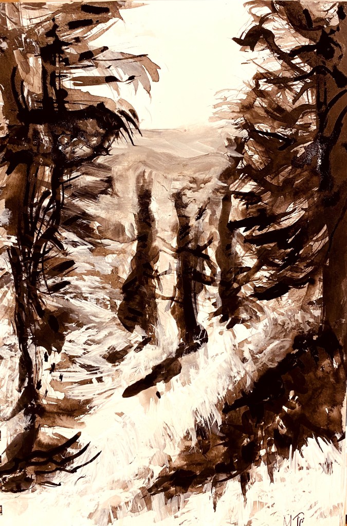 We learned in this six-week course, to take our time and design a plan, to envision our painting. In the process we tried out different perspectives, shapes and structures to express our point of view. We learned that this is a journey, and when we slow it down a bit and enjoy the trip, it is a whole lot more illuminating and interesting. When we get to the actual painting, we are familiar with our territory and can enjoy the painting’s execution more fully.