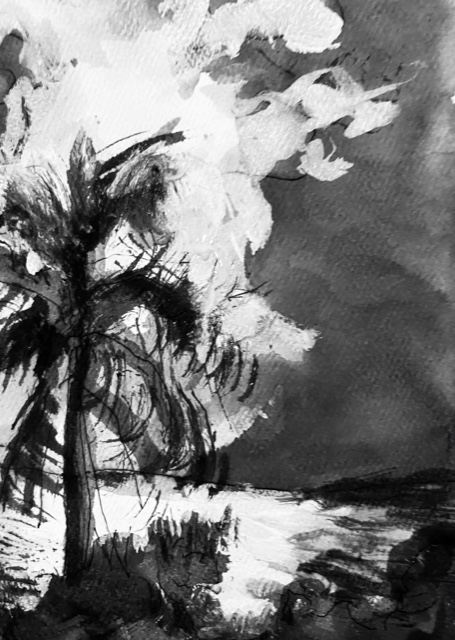 My last one highlighted the variations in shapes and marks between the sky and the beach and how it might be interpreted into perspectives on the girl and her dog.