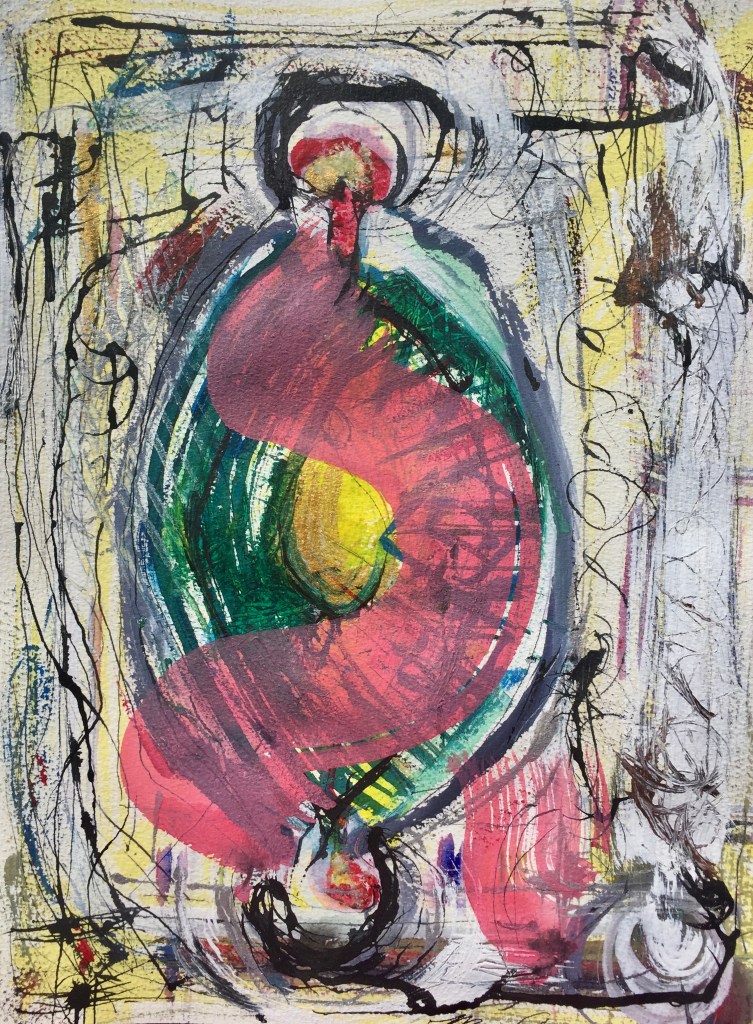 Painting 1, Garden Sanctuary, ink, acrylic, watercolors.