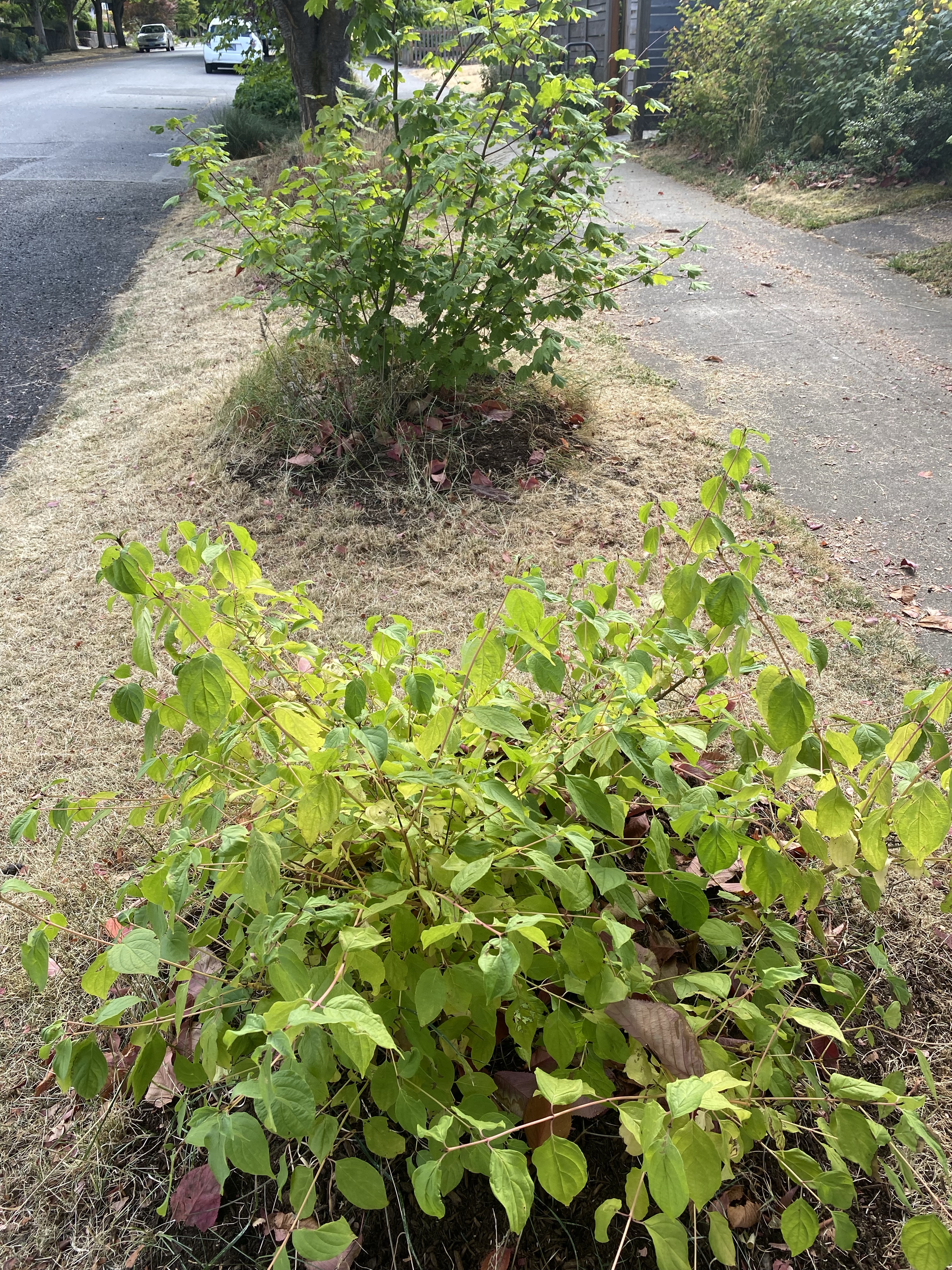 Under the Western Spice Bush in the front yardUnder the Cascara Tree and the Vine Maple Tree in the backyard