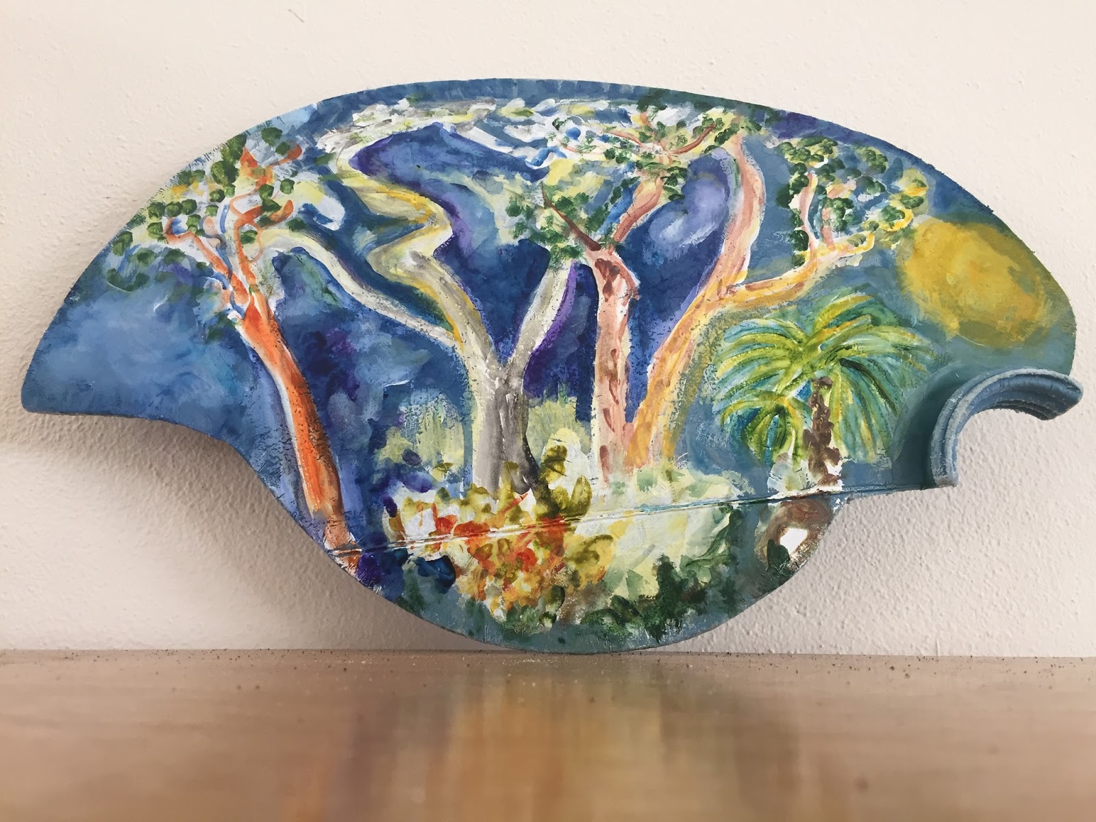 Below is a water color painting I completed on a piece of old plastic found on the beach.